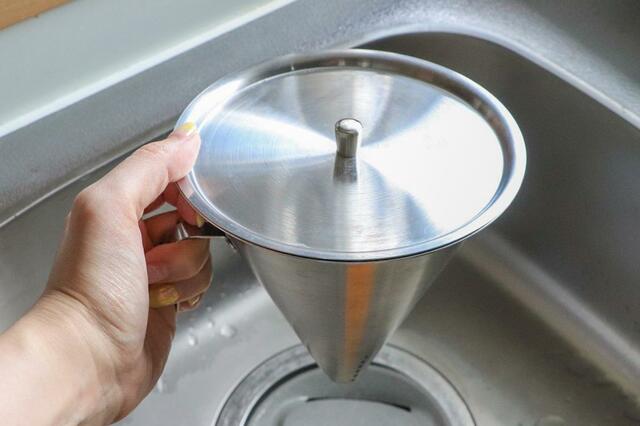 付属のフタを閉めれば、生ゴミが見えなくなりスッキリ。フタがあることで嫌なニオイも抑えることができそうです。それでは、シンクに設置してみます。