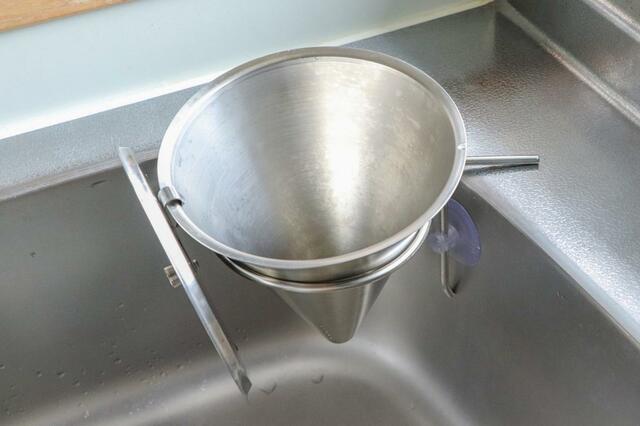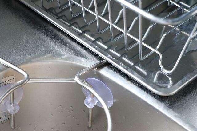 シンクのギリギリに水切りラックを置いているのですが、フレームと干渉してしまいました。同じようにシンクの近くにものを置いていたり、段差がある場合は設置が難しいかも。