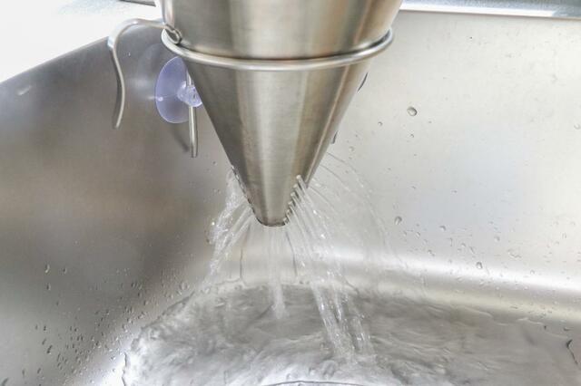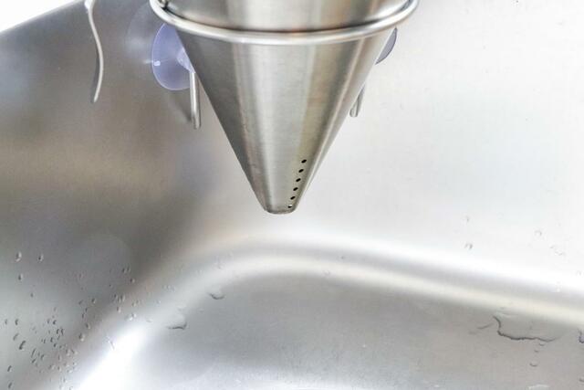 ほかにも感動したのが水切れのよさです。円錐になっているので下に水が落ちやすく、穴がたくさん空いているので水切れが早い。
