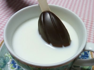 お湯か、温めた牛乳にショコラスプーンを入れてかき混ぜると、