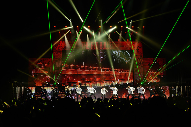 次に、『Rain』をしっとりと聴かせると、SUGA(シュガ)が「3日目ですが、この公演が、一番ノリがいいみたい」とにっこり。JIN(ジン)が、「ここからはふわふわしたステージをお見せします」といい、"かわいい"防弾少年団をみせる時間に。『BLANKET KICK』では、ステージ中央に置かれたベッドに寝てブランケットの中に隠れていたJUNG KOOK(ジョングク)が自分のパートでムクリと起きあがり顔を出して歌う演出が。他にもV(ブイ)がJINにキスをしようとしたり、J-HOPEがJINを抱きしめたりと、メンバーはやたらとイチャイチャ……。その可愛さにファンも悶絶、黄色い悲鳴を上げていた。