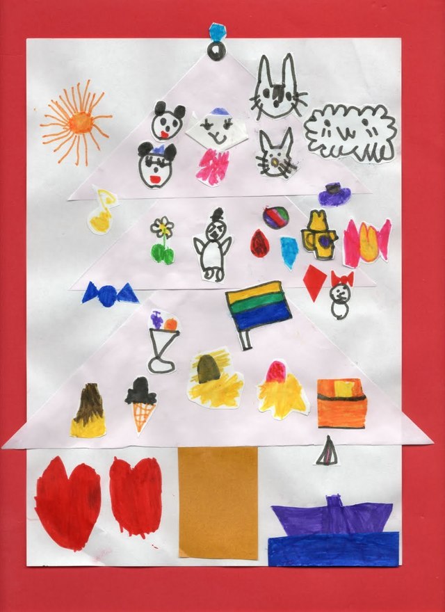 一番好きな色の折り紙で三角形を作って、画用紙へ貼り付け、ベースのツリーを作ります。