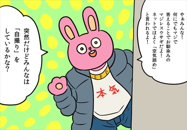 次ページほかにもあるぞ! 自撮りの種類 1 2 3 » X Facebook 関連記事 海外を例に上げるのはやめませんか? もう何でも自分の話に持っていくのはやめませんか? 【関西人限定】もう下手な関西弁に怒るのはやめませんか? もう「女って怖い」は卒業しませんか? 銭湯神ヨッピーが語る!見ると銭湯に行きたくなる最高の入浴法 これは絶対食べたい!夏限定アンデスメロンの「ダッチベイビーパンケーキ」が"半額"で楽しめる!! 別れた恋人のSNSを「監視」する友人への違和感…“知りたい欲”がもたらす異常な思考とは どう楽しむのが正解?「SNS疲れ」を避けるために意識すべきポイント >バーグハンバーグバーグオモトピア自撮り写真TwitterFacebookInstagram