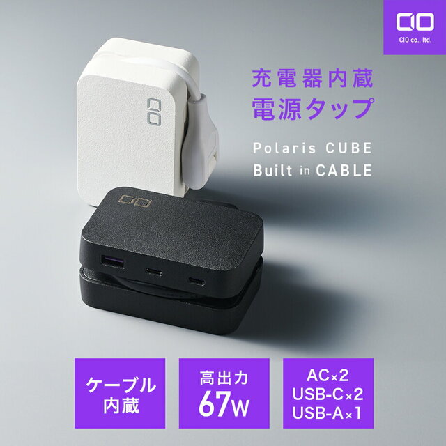 ACコンセントケーブルを内蔵したUSB-Cコンパクトで軽量な充電器搭載電源タップ「Polaris CUBE Built in Cable」が1,200円オフに!