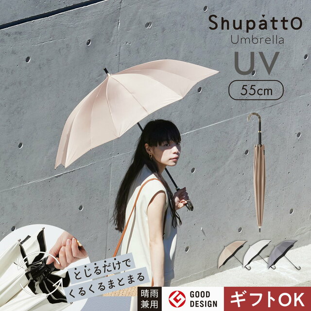 閉じると連動してまとまってくれる! 晴雨兼用日傘「Shupatto アンブレラ UV」がポイント5倍+クーポン割あり