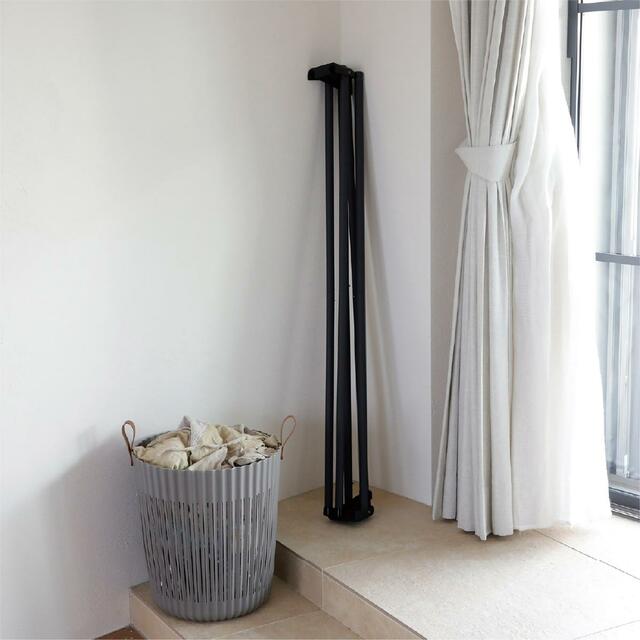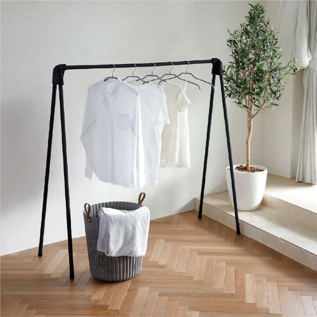 最初に惹かれたのは、このシンプルなデザイン。オールブラックかつスタイリッシュな形で、ハンガーラックとして使ってもよさそう!