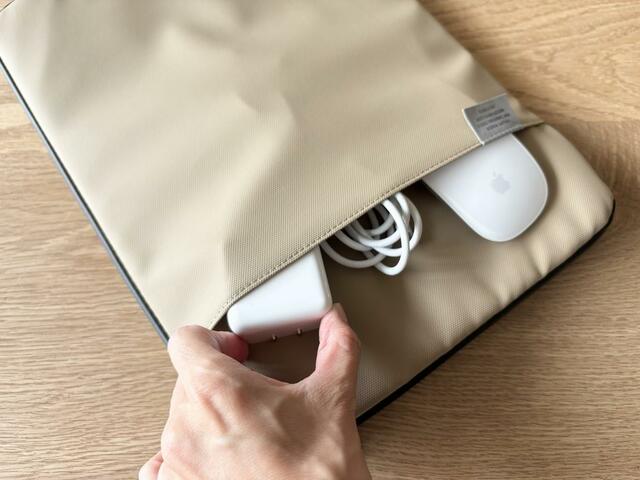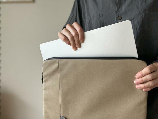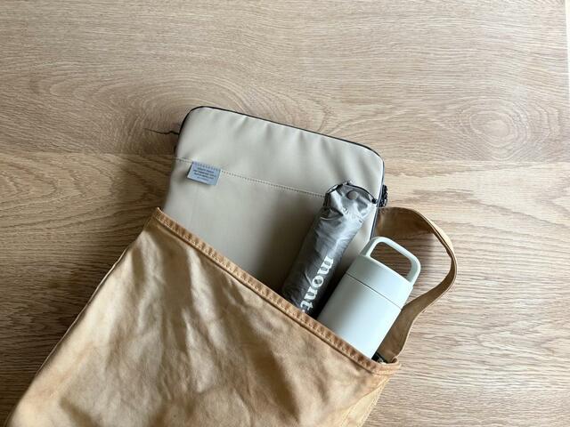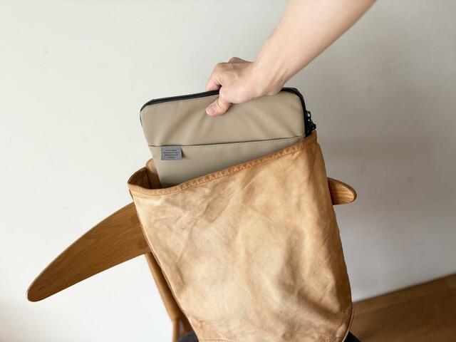 撥水のパソコンケースがあれば、好きなバッグで出掛けられます。