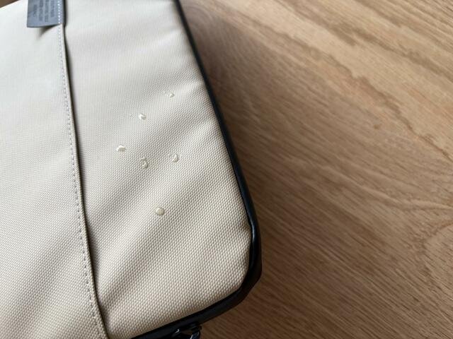 完全防水ではないので雨ざらしはもちろんNGですが、ポツポツの雨ぐらいならハラハラせずに持ち運ぶことができます。