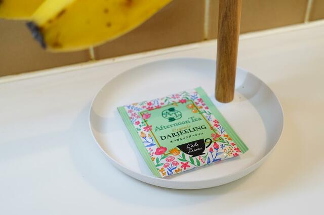 小物入れには翌朝飲む紅茶のティーバッグを置いたり、レモンやオレンジ、りんごなど、室温でも大丈夫そうなフルーツを置いたり。