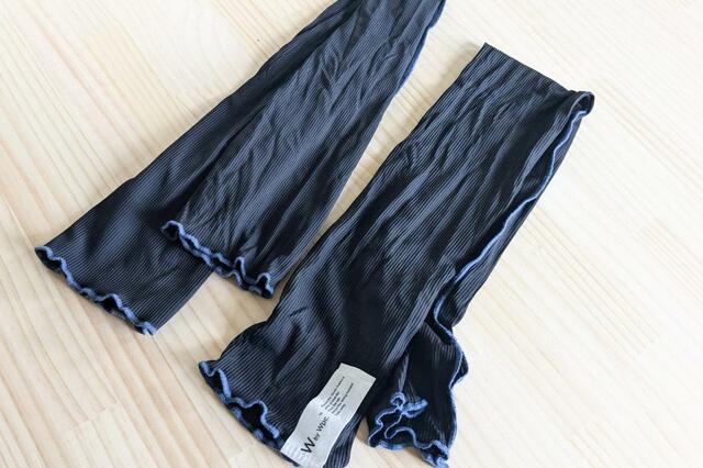 しかし、このアームカバー、縦にラインが入っていて細見えするだけでなく、縫い目の差し色がスタイリッシュ。