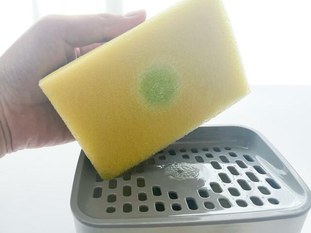 ワンプッシュでスポンジに洗剤がしっかり染み込みます。