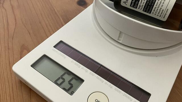 50ml入りで65gと軽く、持ち運びもしやすいです。