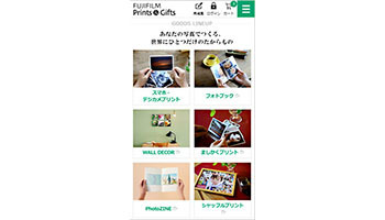 FUJIFILM Prints & Giftsは、これまで富士フイルムが提供してきた「FUJIFILM ネットプリントサービス」を刷新したもので、スマホの小さな画面上でも分かりやすく快適な操作ができるようにサービスメニューの配置や文字の大きさなど、デザインを一新した。