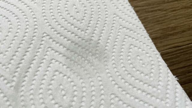 キッチンペーパーに噴射してみたところ、このくらいの量が出ました。大きく広がるというよりは、一箇所を狙いシュッと出てくるスプレーのようです。
