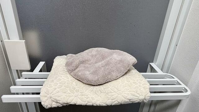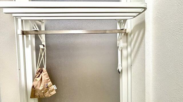 ハンガーの上部は、簡易的な棚にも充分な面積なので、タオルだけでなく着替えの一時置き場としても使えます。
