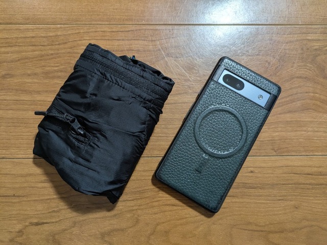 このパーカー、左の胸ポケットに本体を収納できるのも大きな魅力。畳み方の説明はありませんでしたが、ポケットを中心に折り畳んでいき、ポケットのファスナーを開けてひっくり返すように収納すればOKです。スマホと同じくらいのサイズ感になり驚き!