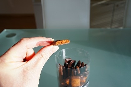 ミルクとブラックの2種類のチョコレートが掛かっているスパイスの効いたサブレ。