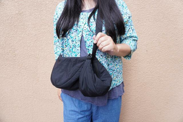 ストラップをつけてボディバッグとして使ってしてみました。ボディバッグとしてもミニサイズですね。