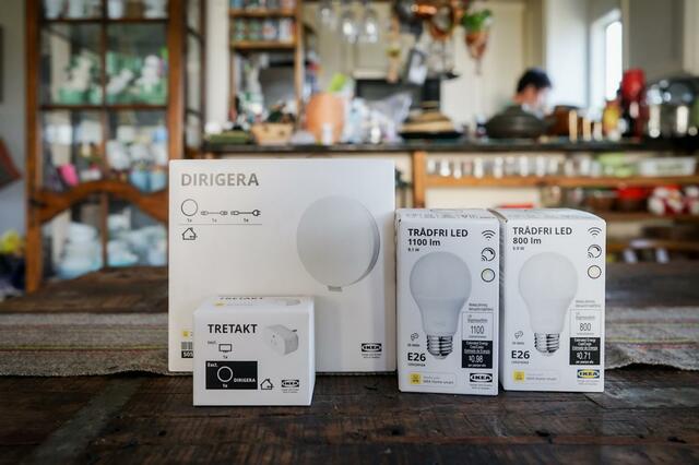 スマートホーム化初心者の我が家。まず、イケアで揃えたのはスマートハブ「DIRIGERA ディリフィエラ」、スマートLED電球「TRÅDFRI トロードフリ」、スマートプラグ「TRETAKT トレータクト」の3つ。