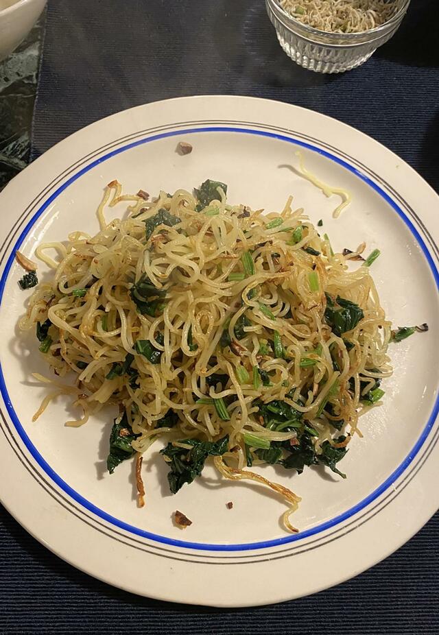 (恐れ多くも)ウーウェン流に対抗して作ったHide流焼きそばは、ニンニクとほうれん草入りのカリカリ焼きそば(味付けはナンプラー)。もっとカリカリに焼けばよかった〜とは思ったが、美味しい。連続の韓国海苔レタス、これも超簡単でうまい。