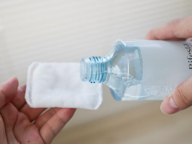 使うときは、コットンに適量を含ませて優しく拭きとります。