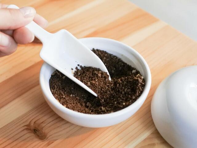消費期限の切れたコーヒー粉や使用後のコーヒーかすを乾かしてポットに入れて、こもったニオイの消臭に使えます。