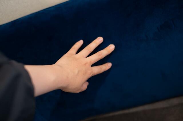 すぐに乾くおかげで、ソファーやベッドなど肌が触れる場所でもタイミングを気にせず使えます。