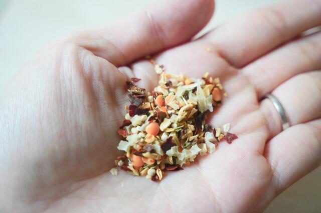 手に取ってみると、乾燥チップのような感触。キヌアはたんぱく質や食物繊維、ミネラル類など多くの栄養素を豊富に含んでいるそうなので期待大です。毎日の食事が、お手軽に健康的なメニューにできそう!