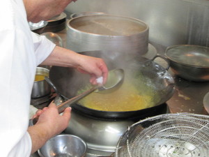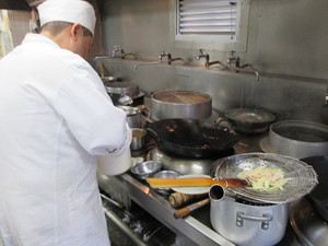 ということで、今回はガッツリ食べ応えのある排骨咖哩をオーダー。いただく前に「どうせなら作っている所も見てみたい」とお願いしたところ、齋木さんのはからいで厨房取材もOKに! さっそく厨房にお邪魔して、調理の様子を間近で見学させていただいた。