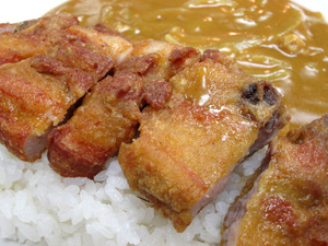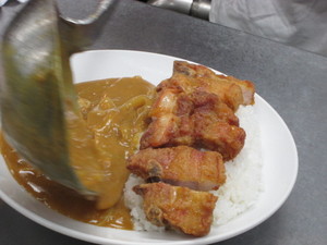 ご飯の上に排骨をトッピングして、片側にカレーソースを盛り付ければ完成!