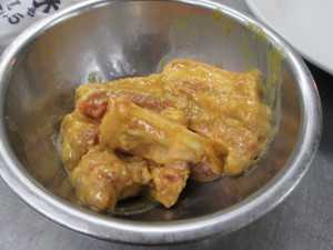 そして、カレーソースが出来上がったタイミングで排骨も揚げ上がり、いよいよ最後の仕上げに。