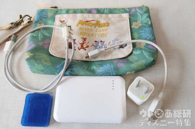 サイズが幅約19cm、高さ約12cm、マチ約4cmで、中に仕切りもあるので、モバイルバッテリー、コード、SDカードの予備、などがたっぷり収納できるのです。