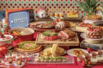 ストロベリーショートケーキ/白桃ムース/アメリカンチェリームース/パッションフルーツのタルトレット/マンゴーのバトンパイ/桃のパンナコッタ/桃のジュレ/チョコレートブラウニー/白桃のロールケーキ/パンケーキ(ベリーソース / チョコソース / ホイップクリーム)/カラフルストーンアイス(6種のフレーバーアイスクリーム/8種のトッピング)