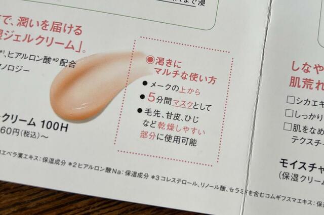 「乾燥が気になる箇所にちょっと厚めに塗って5分間おき、その後塗り広げればいつもより集中的にケアできますよ」とのことでした。