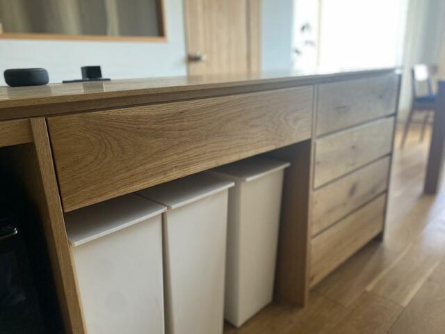 リビング・ダイニングと同じ空間にある我が家のキッチン。ゴミ箱はそのカウンター下にあるため、対策を怠ると生ゴミ臭が生活空間に漂ってしまうことに……。