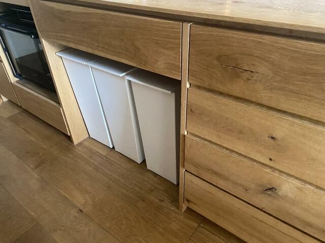 生ゴミ用のゴミ箱は、横にくるように貼ってしまいました……。