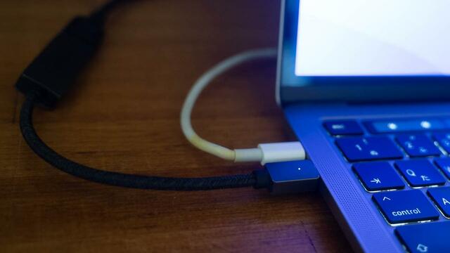 すると問題になるのが、MacBookのようにType-CポートしかないPC。HDMIをそのまま挿せないため、HDMI→Type-Cの変換アダプターが必要になります。さらに、別途給電用のType-Cケーブルも必要。