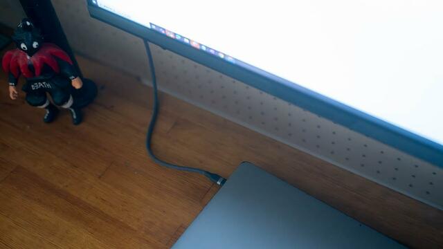 最近は、USB Type-Cケーブル1本で映像出力と給電の両方をまかなえるモニターも出ていますが、うちのモニターにそんな気の利いた機能はありません。