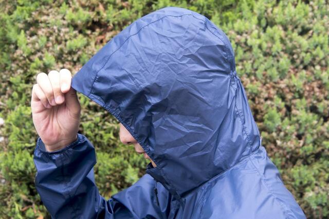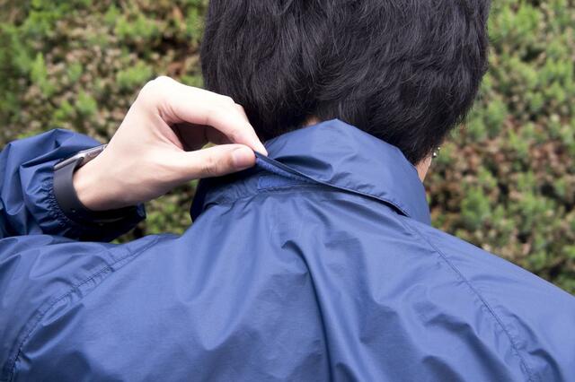 襟の部分にはフードが収納されているので頭までしっかり覆うことができるのも嬉しいポイント。