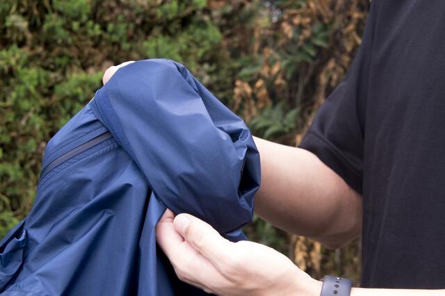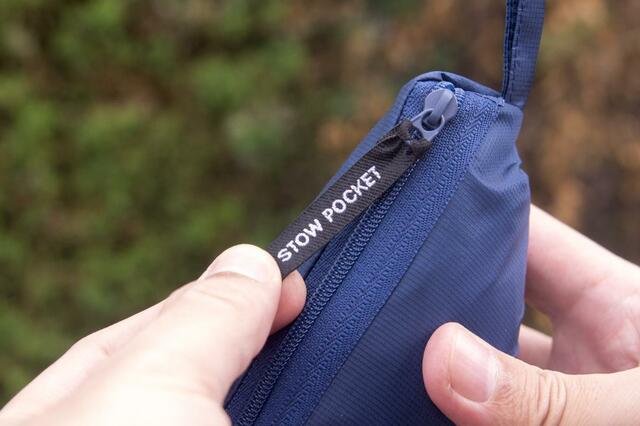 ポケッタブル仕様のジャケットなのでこちらのポケットに本体を押し込んでいくと。