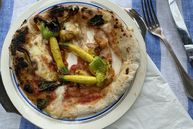TORUくん作のピッツァ(チビズッキーニ)は柔らかすぎたせいか、ヘラにくっついてしまい、失敗。味は良かったのに、残念。