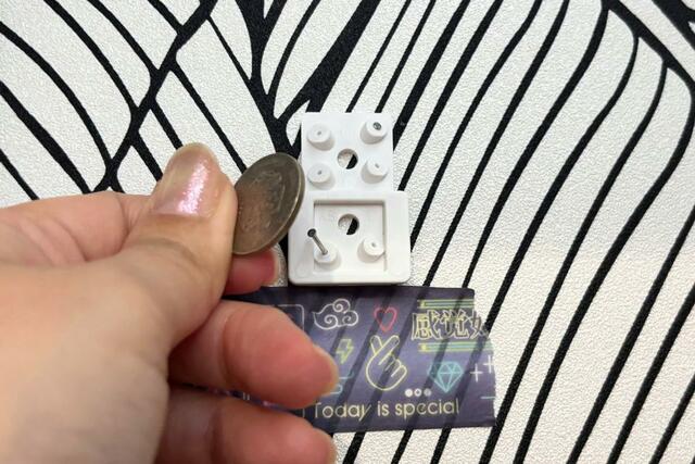 ピンはコインなどを使ってまっすぐ押し込むと簡単につけられます。