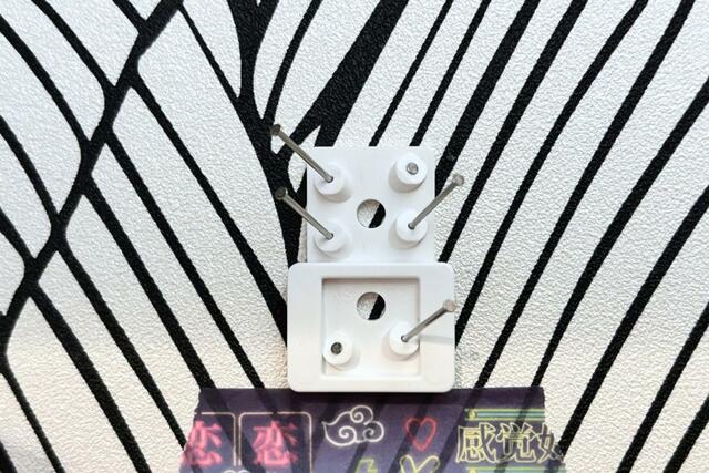 付属の石膏ボード用のピン6本か、ネジ2本を使って取り付けベースを壁に取り付けます。