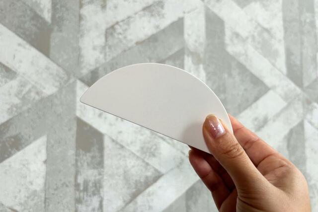 石膏ボード用のピンを取り外すと、1mmくらいの小さな穴が空いてしまいます。写真のような穴がひとつあたり6個開くので、小さくても壁へのキズを気にする場合は避けたほうが良いかもしれません。