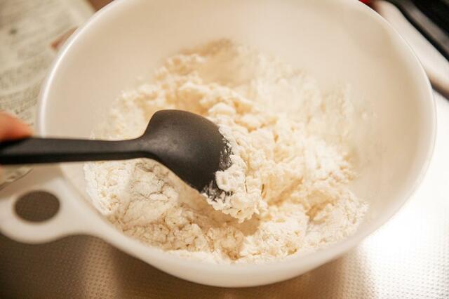 ある程度まとまりが出るまで、調理ベラで混ぜましょう。