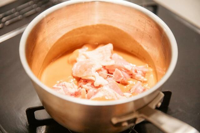 ③鶏肉をイン! 火が通るまで煮込む