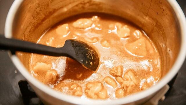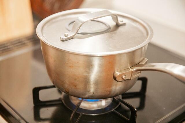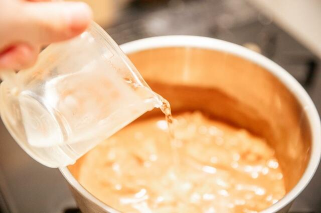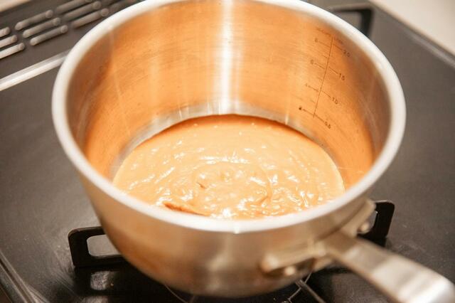 ②鍋にソースベースを入れ、中火で加熱。煮立たせます。