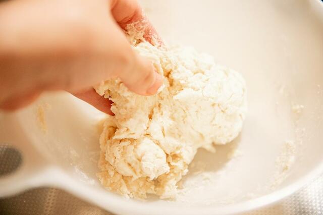 まとまってきたら手で直接こねます。最初は手にべっとりつくのですが、全力でこねていくうちになめらかな質感に。