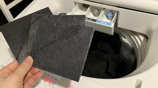 通常モードで洗剤を入れた後、黒復活シートを洗濯機に直接投入!