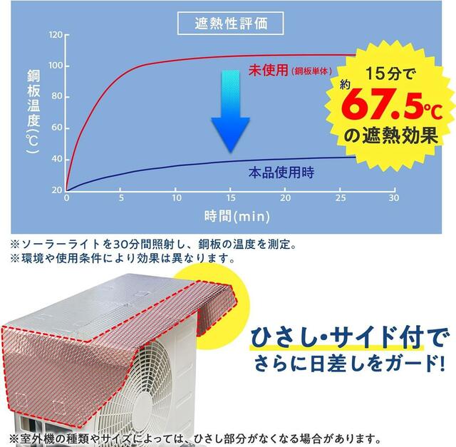 エアコン室外機に設置する「エアコン室外機遮熱シート」は、こうした問題を緩和し、電気代の節約に役立てられるというアイテムです。
